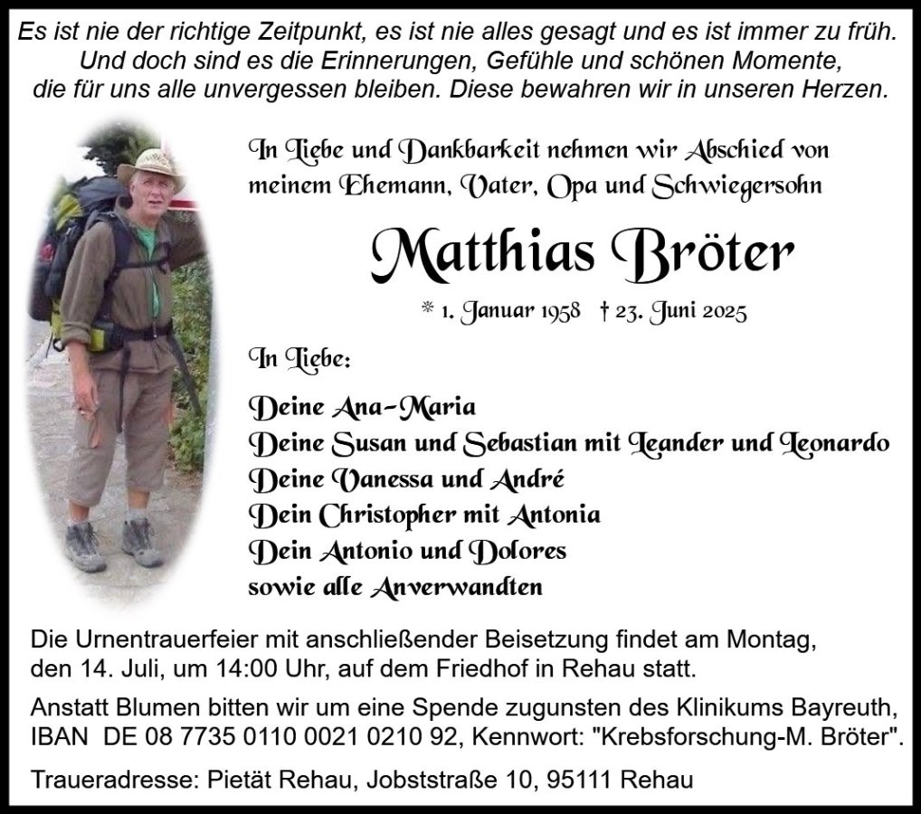 in dieser Zeit des Schmerzes wünschen wir Ihnen Kraft, den Verlust im Kreise Ihrer Liebsten zu verarbeiten. Als Zeichen unserer Anteilnahme und des Gedenkens entzünden wir dieses erste Licht. Möge diese Gedenkseite Ihnen helfen, Erinnerungen zu teilen und so das Andenken gemeinsam wachzuhalten.