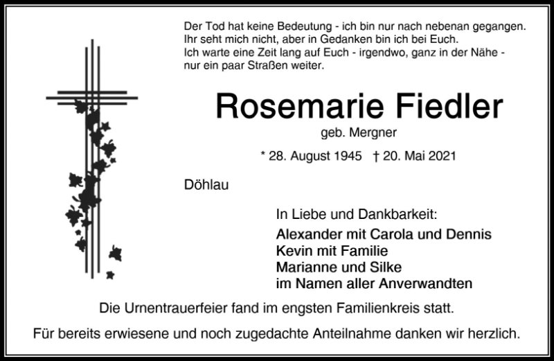 Rosemarie Fiedler geb. Mergner