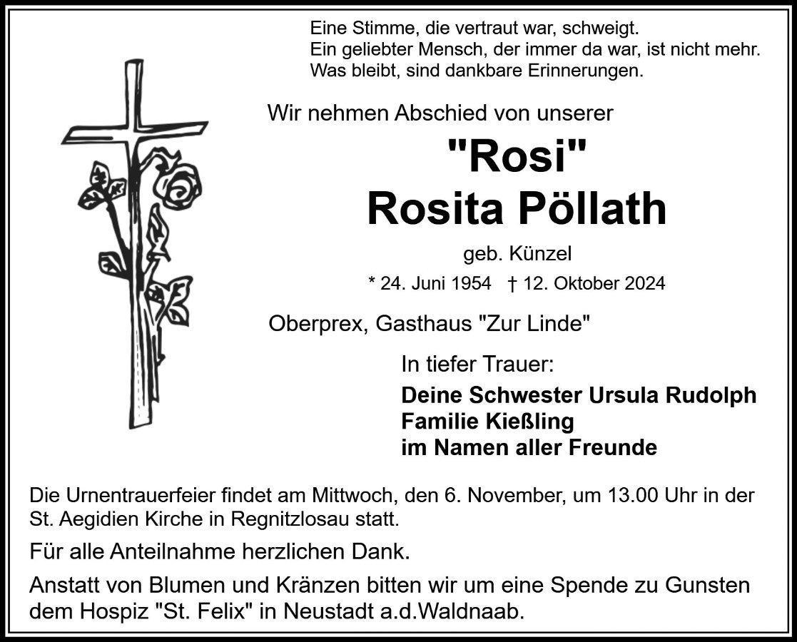 Rosi ich vermisse dich. Du warst voller Liebe zu den Menschen, warst mitfühlend und hast mit dem Herzen gesehen. Mich tröstet der Gedanke, dass es dir jetzt besser geht. Du hast Spuren hinterlassen und wir werden dich nicht vergessen. In Liebe....